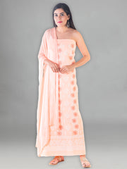 Seva Chikan Hand Embroidered Peach Cotton Lucknowi Chikan Unstitched Suit Piece-SCL1427