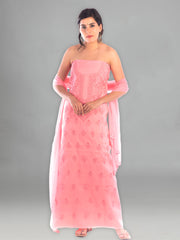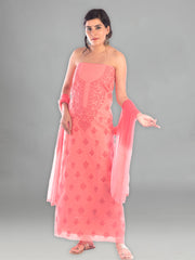 Seva Chikan Hand Embroidered Pink Cotton Lucknowi Chikankari Unstitched Suit Piece With Mukaish/Muqaish Work--SCL0553