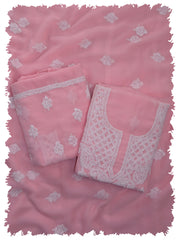 Seva Chikan Hand Embroidered Pink Georgette Lucknowi Chikankari Unstitched Suit Piece-SCL13119