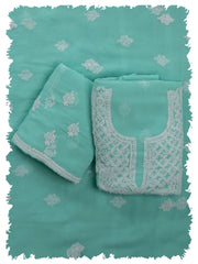 Seva Chikan Hand Embroidered Sea Green Georgette Lucknowi Chikankari Unstitched Suit Piece-SCL13111