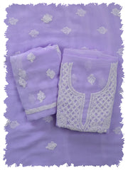 Seva Chikan Hand Embroidered Berry Blue Georgette Lucknowi Chikankari Unstitched Suit Piece-SCL13116