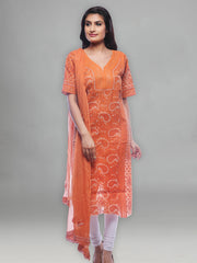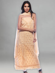 Seva Chikan Hand Embroidered Peach Georgette Lucknowi Chikankari Unstitched Suit Piece With Zari & Gott Patti Work-SCL0063