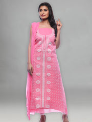 Seva Chikan Hand Embroidered Pink Cotton Lucknowi Chikankari Unstitched Suit Piece-SCL0056