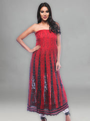 Seva Chikan Hand Embroidered Red Cotton Lucknowi Chikankari Unstitched Suit Piece-SCL0060