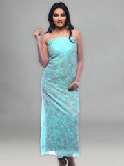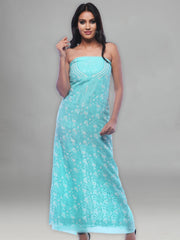 Seva Chikan Hand Embroidered Turquoise Georgette Lucknowi Chikankari Unstitched Suit Piece-SCL0071