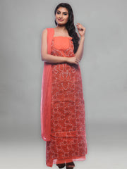 Seva Chikan Hand Embroidered Rust Orange Cotton Lucknowi Chikankari Unstitched Suit Piece -SCL0017