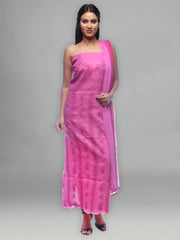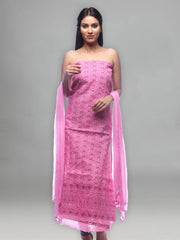 Seva Chikan Hand Embroidered Pink Cotton Lucknowi Chikankari Unstitched Suit Piece-SCL0025