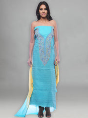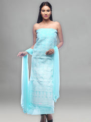 Seva Chikan Hand Embroidered Turquoise Cotton Lucknowi Chikankari Unstitched Suit Piece-SCL0046