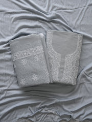 Seva Chikan Hand Embroidered Grey Terivoil Cotton Lucknowi Chikankari Unstitched Suit Piece-SCL13021