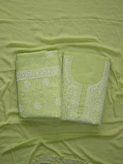 Seva Chikan Hand Embroidered Green Terivoil Cotton Lucknowi Chikankari Unstitched Suit Piece-SCL13019