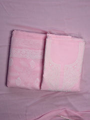 Seva Chikan Hand Embroidered Pink Terivoil Cotton Lucknowi Chikankari Unstitched Suit Piece-SCL13022