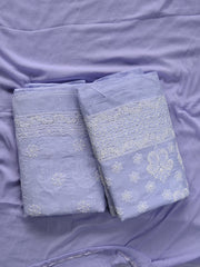 Seva Chikan Hand Embroidered Blue Cotton Lucknowi Chikankari Unstitched Suit Piece-SCL13084