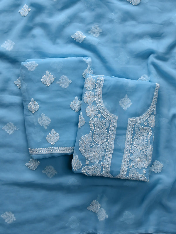 Seva Chikan Hand Embroidered Berry Blue Georgette Lucknowi Chikankari Unstitched Suit Piece-SCL13117