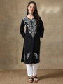 Delineation: Purchase this elegant and comfortable black chikan kurti online from Seva, is ideal for any fashionista. It has white-coloured rich and attractive chikan embroidery. Buy this classic kurti for any occasion, any festival and any party celebrations.