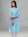 Seva Chikan Hand Embroidered Blue Cotton Lucknowi Chikan Kurti-SCL0274