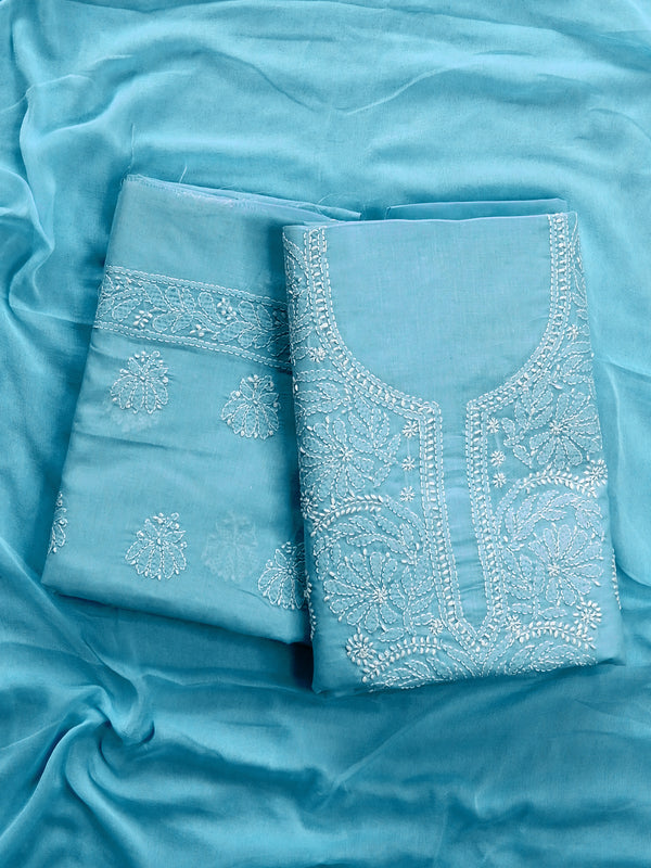 Seva Chikan Hand Embroidered Blue Cotton Lucknowi Chikankari Unstitched Suit Piece-SCL13078