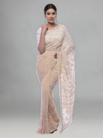 Seva Chikan Hand Embroidered Fawn Georgette Lucknowi Saree-SCL0373