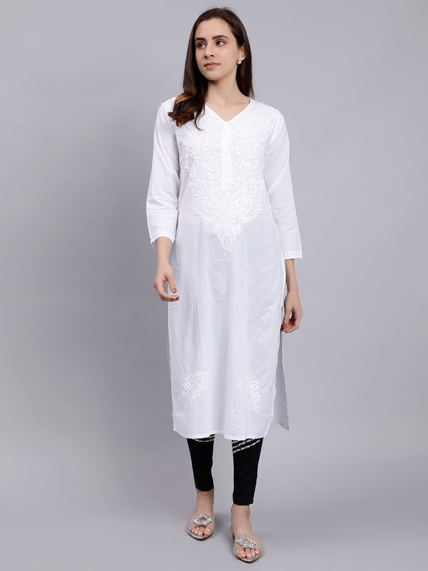 Delineation: Purchase this elegant and comfortable white and black chikan kurta set online from Seva, is ideal for any fashionista. It has white-coloured rich and attractive chikan embroidery. Buy this classic kurti for any occasion, any festival, party celebrations. Disclaimer: There may be some minor dissimilarities in crafting and embroidery than showcase image. Since it is handcrafted product and these minor differences are natural when the crafting procedure has human involvement. However, these crafting changes are beautiful likewise show uniqueness.