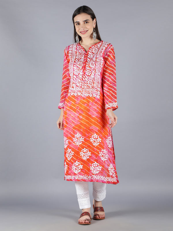Delineation: Purchase this elegant and comfortable orange chikan kurti online from Seva, is ideal for any fashionista. It has white-coloured rich and attractive chikan embroidery. Buy this classic kurti for any occasion, any festival and any party celebrations.