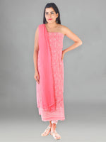 Seva Chikan Hand Embroidered Peach Cotton Lucknowi Chikan Unstitched Suit Piece-SCL1677