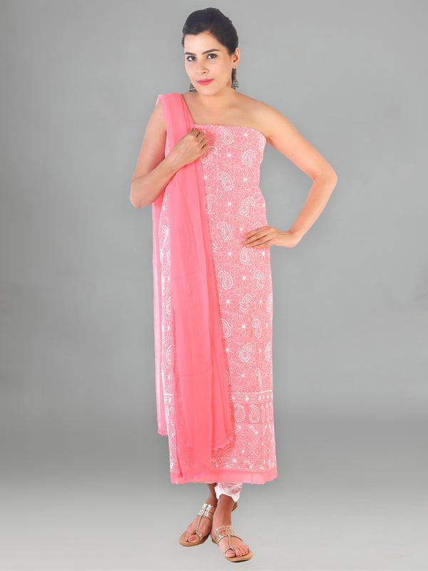 Seva Chikan Hand Embroidered Pink Cotton Lucknowi Chikankari Unstitched Suit Piece-SCL1695