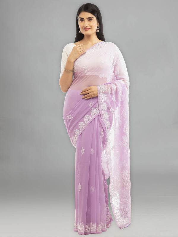 Seva Chikan Hand Embroidered Violet Georgette Lucknowi Saree-SCL1988