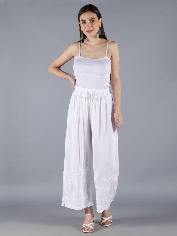 Seva Chikan Hand Embroidered White Cotton Lucknawi Chikankari Palazzo -SCL11019