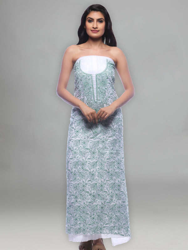 Seva Chikan Hand Embroidered White Cotton Lucknowi Chikankari Unstitched Suit Piece-SCL0048