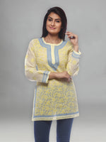 Seva Chikan Hand Embroidered Yellow Cotton Lucknowi Chikankari Short Top-SCL0177