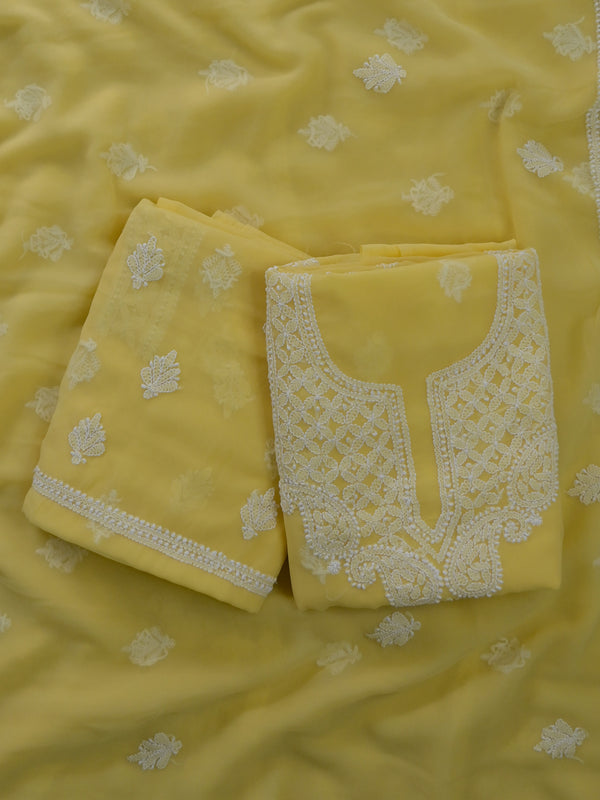 Seva Chikan Hand Embroidered Yellow Georgette Lucknowi Chikankari Unstitched Suit Piece-SCL13114